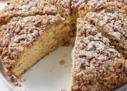 Sour Cream Streusal Cakes: Beautiful 8-inch coffee cakes. Choice of different flavors: Blueberry, Orange-Scented, Chocolate Chip. We usually do a 6″ diameter that serves 4 people very generously, but we can easily do larger ones.