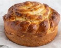 Christopsomo: A Greek Christmas bread: Fragrant round bread with dried fruit, spices, nuts, sweetened with honey.